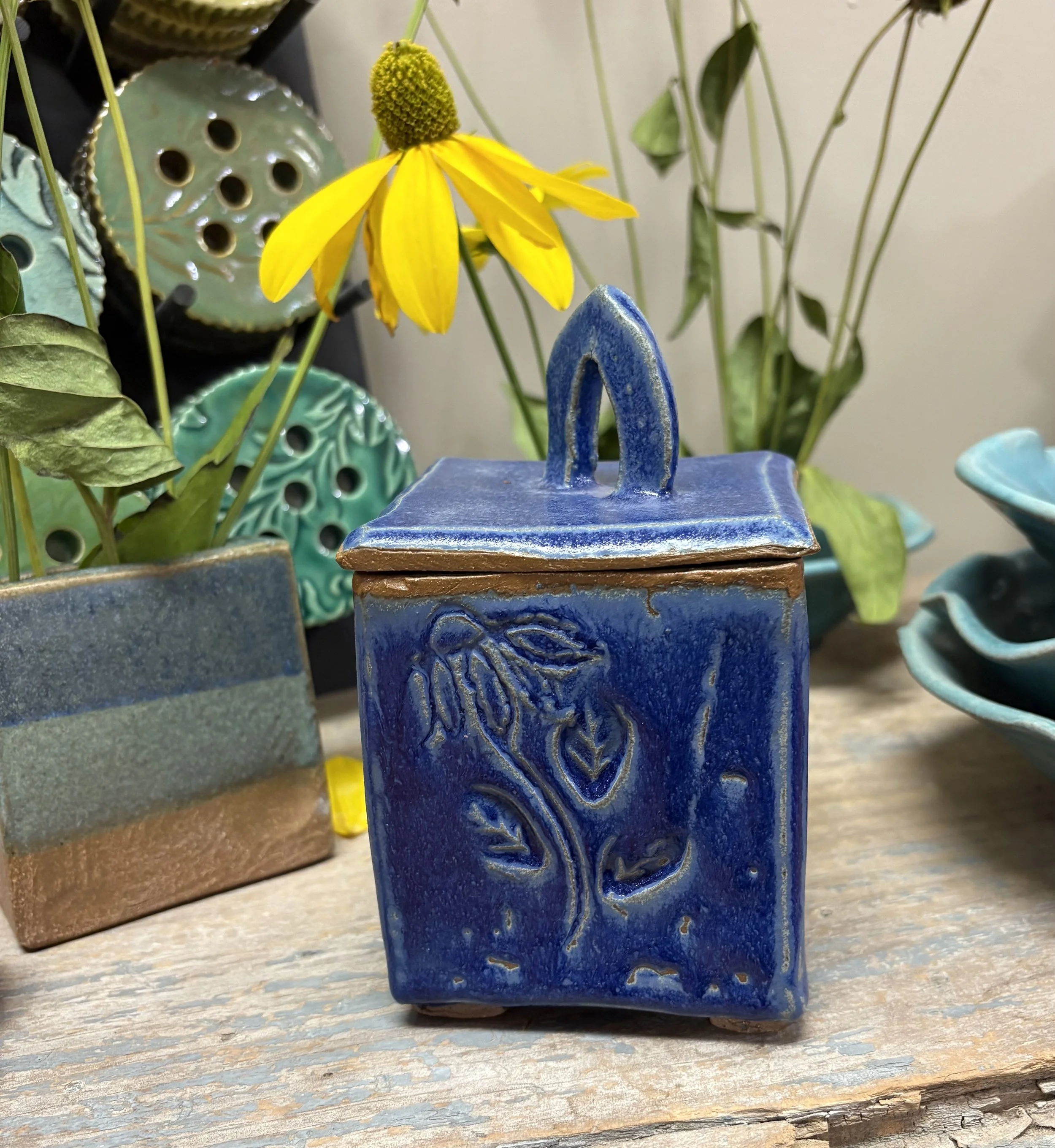 The perfect place to store your treasures, seeds or a little sweet treat! In this one-day, 2 hr workshop, participants will learn the basics of making a decorated hand-built box from a slab of clay. From construction to stamp decoration to creating a well fitting lid you will create your very own unique ceramic box.