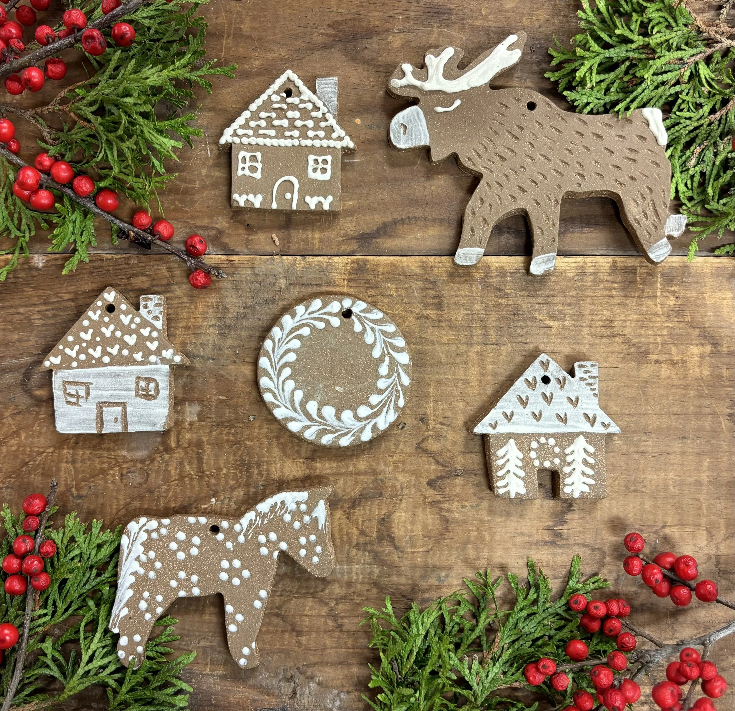 Come make some ornaments with us: In this one-day, 1.5 hr workshop, participants can create ornaments from their own blank slab of stoneware clay. We can carve, slip trail, sculpt, stamp, etc. Bring your imagination! These make perfect gifts and gift tags. You can pick up finished work in about two weeks time.